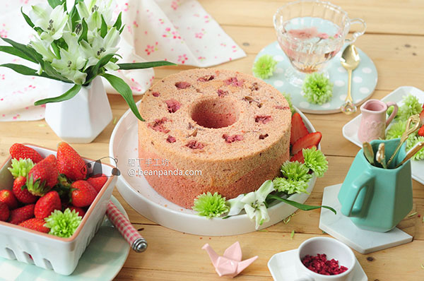 [:hk]櫻花草莓戚風蛋糕【少糖,零油脂,沒有泡打粉】[:]
