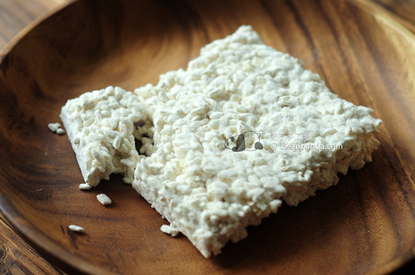 等了兩個晚上,米飯長滿了白菌絲,呈現塊狀,拆開米麴餅裡面也有漂亮的菌絲,夢寐以求的米麴餅終於完成了,跟賣的一模一樣,第一次做就成功,幾個小匙的米麴粉末,變出一大盤米麴餅,興奮的心情難以言喻。