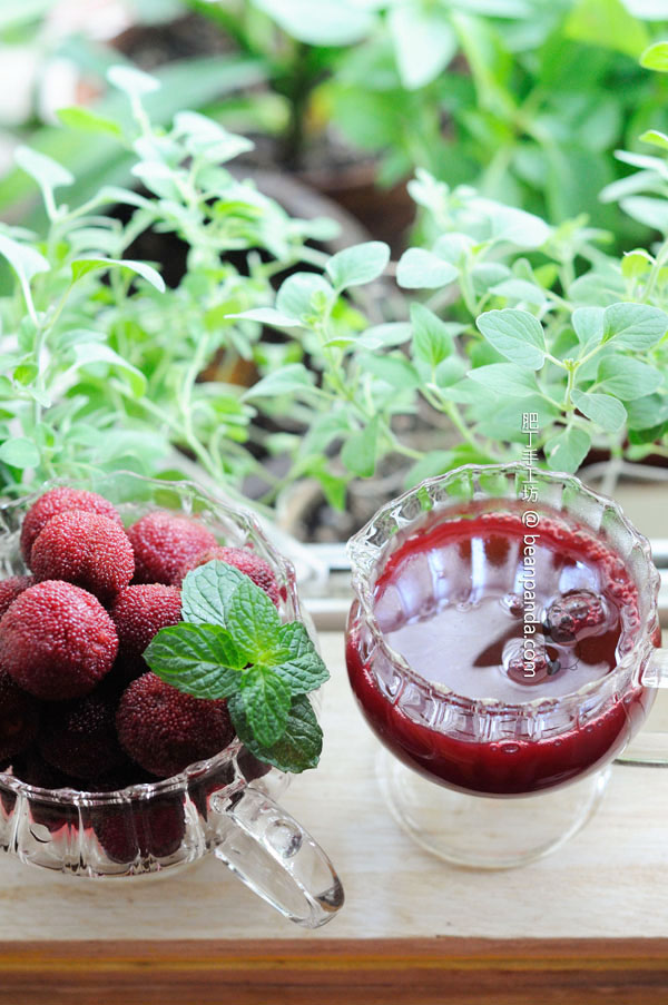 楊梅樹沒有了,一到季節肥丁唯有到巿場買,雖然楊梅甜甜酸酸很對肥丁胃口,大量吃舌頭便痛起來,吃不完的拿來浸酒,製作方法和梅酒差不多,可自然發酵,再簡單一點以白酒浸泡。自然發酵的果味濃郁,肥丁選了焦糖味濃的原蔗糖 Muscovado,釀出風味醇厚,色澤幽深酒液,酒精濃度不高,約 10 ~ 12 度,肥丁覺得比泡白酒更好喝。楊梅酒釀製的時間又比梅酒短,只需一個月的時間,即可享用果香醇厚、口味獨特的果酒。而且楊梅酒極適合夏天飲用,若覺得口中乾渴、腸胃不和、飲欲不振,喝一點楊梅酒,頓時生津止渴,消暑解膩。飲用時若覺酒味濃裂,可以先將飲用的份量冰鎮,以梳打水或礦泉水稀釋,加入蜂蜜和薄荷葉,非常清涼消暑。