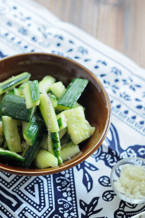 清涼爽口的青瓜,借用村上春樹小說裏的形容:「簡單、新鮮、有生命力的清香」。肥丁最喜歡生吃了,做成涼拌或沙拉等夏日料理,咀嚼時清爽的聲音令人非常舒服。肥丁時常做越式牙車快,拌手撕雞、九層塔,魚露,或以糖醋漬醃,超清爽。蒜拍青瓜雖然也經常做,但是一直對調味不滿意,愈是簡單的菜色,愈是難以拿揑,直至發現了鹽麴。鹽麴淺醃的青瓜沒有鹽醃殘留的澀味,淡淡的清甜更顯青瓜的撲實味道。