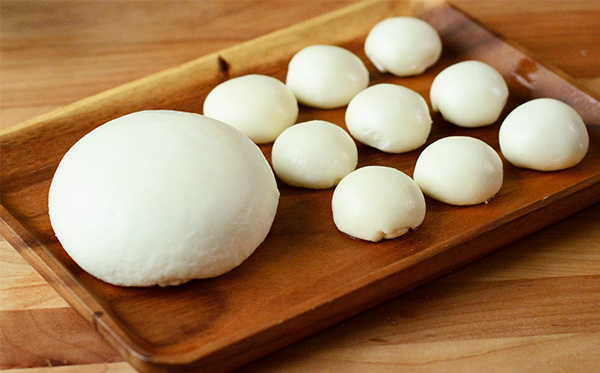11. 重複此步驟 2 ~ 3 次,一直重複步驟,直到凝乳塊變得光滑有彈性為止。然後再拉一拉、扯一扯,但不要過度拉摺