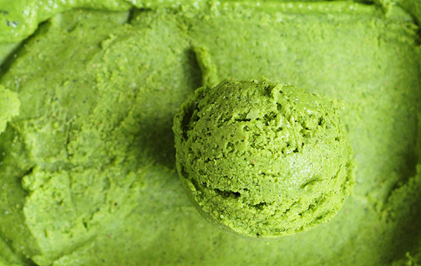 用蔬果製作抹茶冰淇淋,食材一定不能選本身擁有獨特味道的,蓋過抹茶的香氣。純素的抹茶冰淇淋,豆腐、腰果、椰奶都是網絡上常見的。豆腐本身沒有甜味,氣味也強烈,但做冰淇淋卻有一種微微乾澀的口感;腰果太飽膩,質感較硬實;酪梨太容易氧化變黑;椰奶風味太強,不能與抹茶和諧共處,香味稍遜的椰奶,加工程度太多,也不是肥丁心目中理想的天然食材。