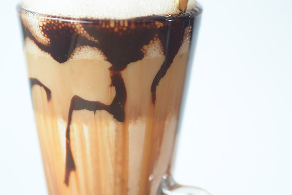 濃醇咖啡融入綿密奶昔裡,像舔了一口快融化的,咖啡草莓冰淇淋。倒奶昔和牛奶的過程賞心悅目,如瀑布般的漸層效果,英式拖肥風味咖啡豆,冷泡法更突顯如巧克力香的甘醇,冷泡咖啡還有很多可能性,等待你去發掘。