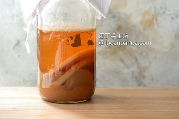 涼開水,增加活性蘋果醋的比例,醋膜放回去,蓋棉布,用橡筋固定,再觀察一段時間