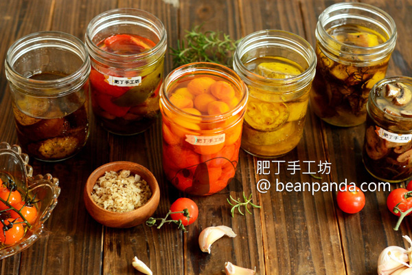 1. 三色甜椒、西葫蘆(翠玉瓜/櫛瓜)茄子、馬鈴薯、大部份的蔬果都可以油封