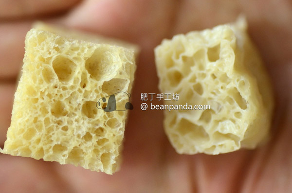 11. 定型後脫模,發酵所產生的氣孔,就如網狀的海綿,好像切麵包的感覺