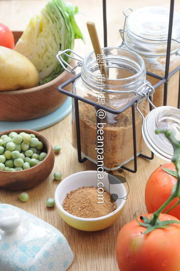 • 500 ml 清水,3 小匙蔬菜粉,拌勻,即成蔬菜清湯,覺得味不夠濃可再加 1 小匙