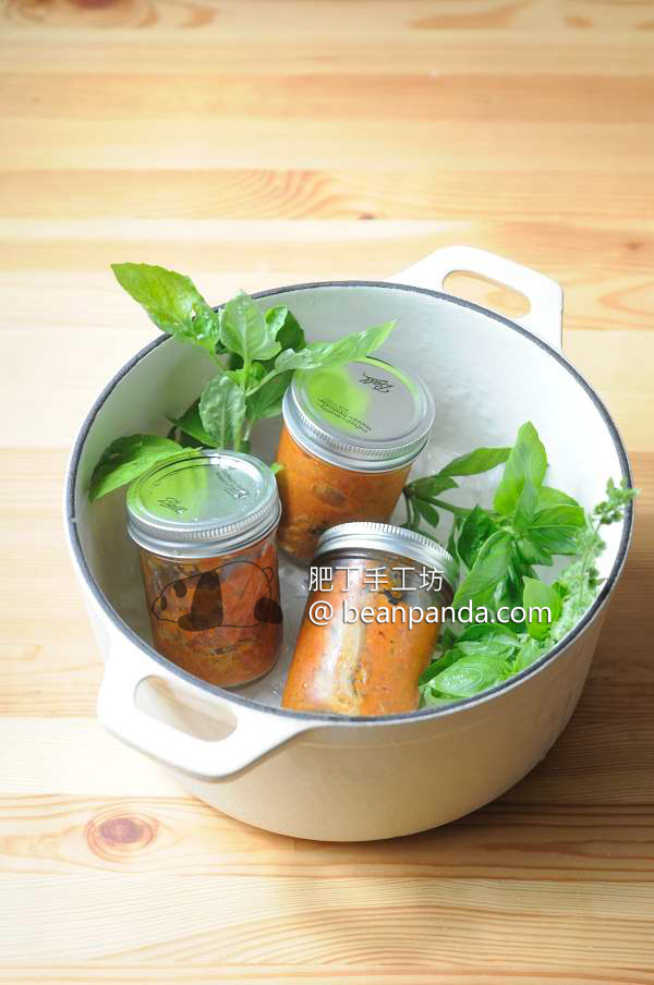 11. 煮好後瓶子會成真空,從鍋裏取出,放涼,最好放冰箱醃一週才吃,只要不打開瓶蓋,在冰箱保存可達半年。若瓶蓋膨脹起來,表示裡面有空氣,不能久放,要先吃掉。冷藏過的沙甸魚,開瓶後要煮熱才吃唷 ~