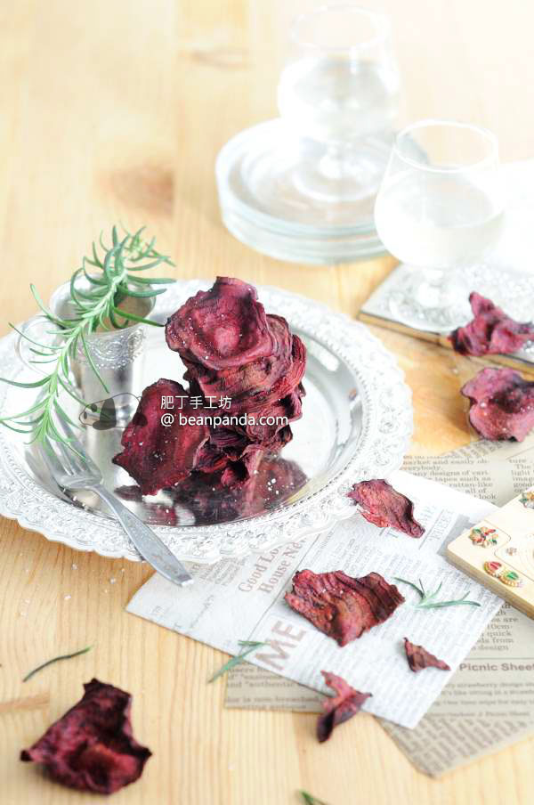 甜菜根原產於歐洲,又名「菾菜」或「紅菜頭」,是甘蔗以外的砂糖原材料,能降血壓,預防心臟病、中風、腸癌,減緩老年痴呆症。甜菜根糖度高,熱量卻很低,薄切沾黑醋和蜂蜜,烤成脆片,即成低卡、天然、健康的零食!更重要的是,烤脆的甜菜根片一點土味也沒有,代替洋芋片 ( 薯片 ),大口吃也不會有罪惡感,建議多做一點,否則別後悔不夠吃啊!