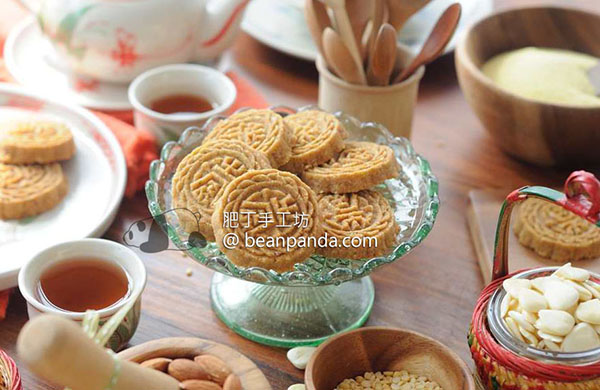 These crumbly, small and easy Chinese Almond Cookies that is made with ground mung bean flour and ground almonds. It is one of the most standard Chinese pastry in Canton. In Macau, the snack has been one of the most popular specialty products, selling in different flavours.
