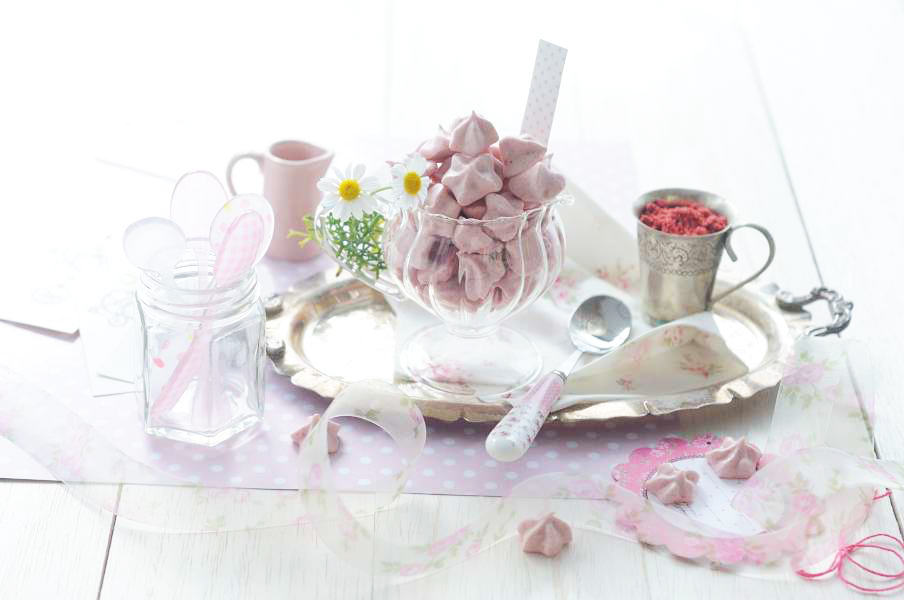 蛋白霜脆餅,也稱蛋白糖,其實就是小時候很喜歡的花占餅的上半部分,那五彩繽紛、酥脆、雲朵般輕盈、入口即化的甜蜜感覺,就把小肥丁深深迷住了,由此可知肥丁小時候吃了多少人造色素 T.T。蛋白霜脆餅一般是用蛋白和糖打發,擠花烘乾製成,是零食糖果的入門。馬卡龍是五星級難度,蛋白霜脆餅只是一星級,只要把蛋白打發起來加糖,幾乎是不會失敗的。