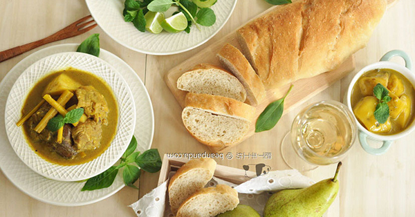 近日氣溫驟變,時冷時熱,一場連綿冬雨,害肥丁和熊貓先生相繼患感冒,日前才稍有好轉,大家要注意氣溫的變化,小心身體噢。潮濕又寒涼的天氣,吃咖哩最好,驅寒驅濕,可是肥丁吃不了辣,在家裏儲備了一些有咖哩香但沒有辣味的咖哩粉,加入椰漿,佐青瓜、青檸汁、薄荷葉,充滿越式風味。烤得脆脆的法包醮上咖哩汁,回味無窮 ﹗