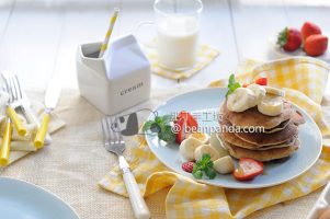 香蕉產量高,是價廉物美的大眾水果。冬季開花,春季採收的「春蕉」,風味最佳,5、6月雨季來臨,氣溫升高,香蕉的味道會稍差。香蕉營養均衡,幾乎含所有的維生素和礦物質,含豐富的膳食纖維及果膠,能幫助消化、潤腸、降低中風機率。用香蕉製作鬆餅,不需要特別的模具,低糖,無泡打粉,晚上做好放進冰箱,次日噴水送進烤箱烤熱,是便捷又能量滿分的早餐,完全滿足繁忙的都巿人。