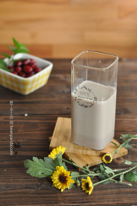 其貌不揚的黃豆,營養價值很高,含豐富蛋白質、十多種礦物質及多種維他命。如果你家有豆漿機,天天喝豆漿全無難度,可是像肥丁很久才做一次,用攪拌機磨漿後再煮滾,步驟也很簡單。肥丁因為體質的關係很注意食物的寒熱分類,黃豆是寒涼之物,肥丁製作豆漿時必定加入溫熱的食材相輔相承,例如黃豆黑豆各一半,以黃糖調味。有時候也用紅豆,好像台式豆腐花,一寒一熱,一起攪拌成豆漿,也有異曲同功之妙。這個配方的味道比黑豆漿醇,但紅豆味不算突出,只用作改善其寒涼的特性,豆漿此終是豆漿 ﹗