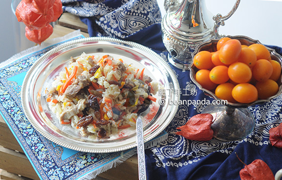 熊貓先生從新疆出差回來,大讚新疆的手抓飯好吃,還買了新疆特產,農家生曬「香妃葡萄乾」,正好做一鍋當令的羊肉手抓飯。