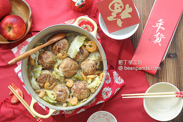 蔬菜的部份,白菜屬性也較寒涼,不適合傷風感冒咳嗽或體質虛寒的人。以高麗菜代替白菜燉出湯汁,加入獅子頭細火慢燉,肉丸吸飽高麗菜的甘甜精華的湯汁,下飯超棒,在冷冷的冬天,燉上一鍋溫暖,為新的一年送上溫馨的祝福。
