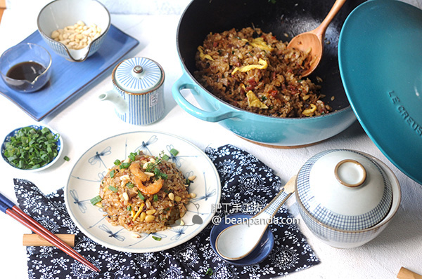 生炒糯米飯是粵菜的一種炒飯,粵菜小炒講究「鑊氣」,端上一碟熱騰騰的小炒會有一種「香」,所指的「香」不是調味料的香,而是猛烈的鑊氣熱力把食物快速逼熟的香,有說法「鑊氣」是美拉德反應,食品在加熱處理會產生不同程度的類黑色素,醬油獨特的醬香味就是美拉德反應。另一個說法「鑊氣」是油脂燃燒的結果,原料和調料在高油溫烹調下,相互滲透而溢出的一種特殊氣味。黑色琺瑯可承受較高的溫度,除了悶燉的料理,亦適宜製作粤菜「鑊氣小炒」。