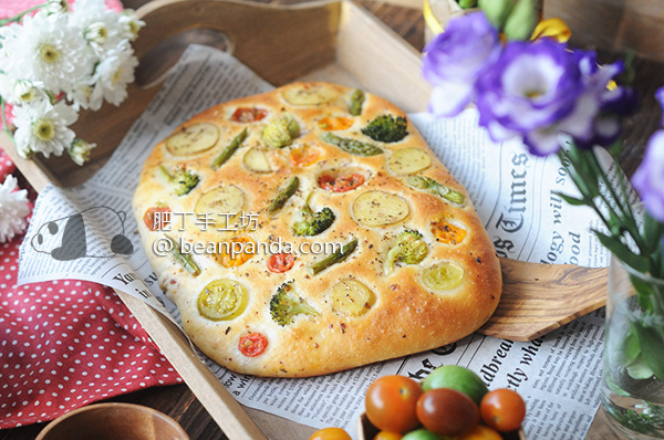 • 佛卡夏表面有蔬菜,容易變壞,吃不完放進用保鮮袋包好,放冰箱保存,吃的時候噴些水,120ºC 回烤 5 分鐘 就會回復香軟