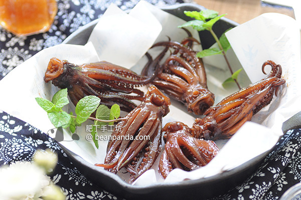 - 湯汁放涼後,加入蜂蜜,放入魷魚鬚,放進冰箱醃 1 個晚上