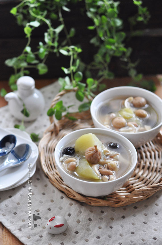 煲湯最頭痛的,就是材料的搭配,別人跟你說甚麼甚麼煲湯好啊﹗可是配那些材料,卻沒有告訴你,幸好我家有個學中醫的丁媽,季節湯水,度身訂造,肥丁又來將丁媽的配方發揚光大。合掌瓜滋補解燥、助腸胃消化,百合清熱、潤肺、止咳、安神。春末天氣開始轉熱,容易多夢煩燥。天陰、下雨、悶熱,喝這湯特別舒服。以蔬果粗糧作食療材料,不用擔心吃太多會否過量 ( 除非你對果仁敏感 ),丁媽說對虛火勞咳、慢性氣管炎、肺氣腫、更年期障礙都有幫助,當做一般湯水也是很滋潤的。