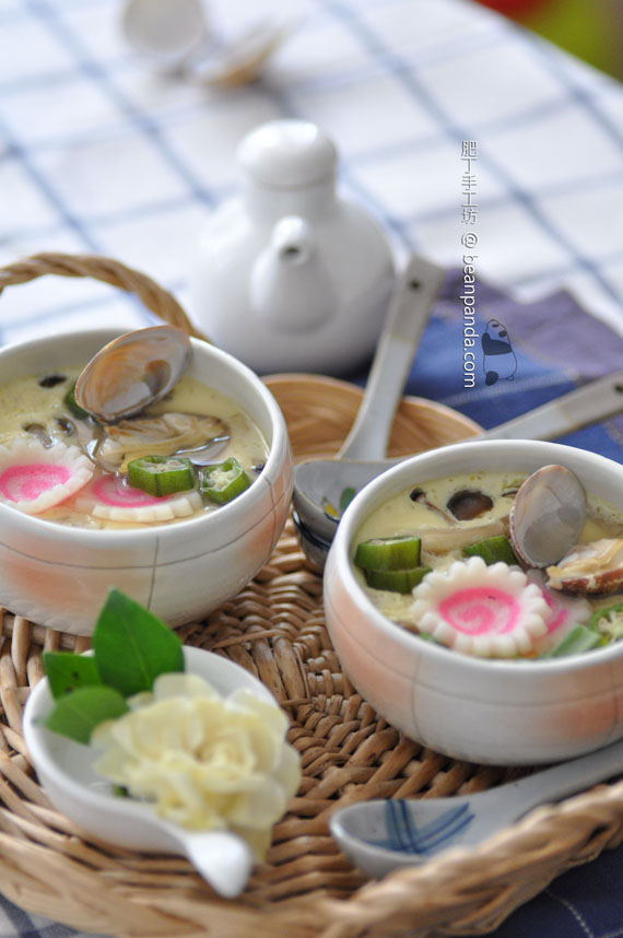 - 看似簡單的一道菜,湯底要用溫水,隔篩過濾,鍋蓋要用蒸布包裹,鍋蓋留少許空隙,水滾才放入盛器,再大火,後細火,便能輕易做出幼滑美味的茶碗蒸。