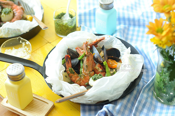 Seafood cooked in cooking paper may be one of the best way to steam in great taste.