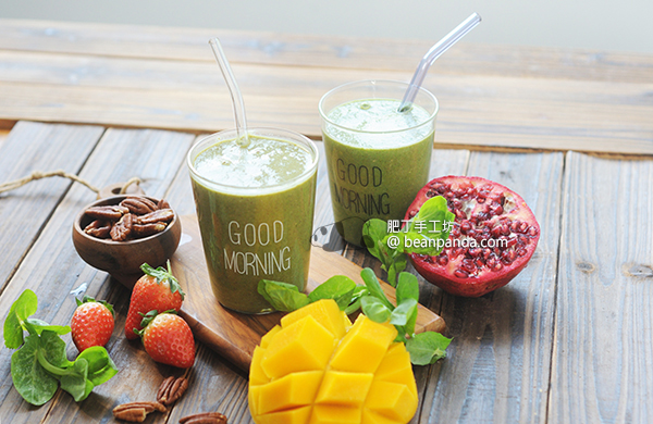 - 很多綠拿鐵配方加入老薑、薑粉、薑黃等,以平衡蔬果的寒性,肥丁有試過,不過味道不討好,為哄熊貓先生嘗試,所以這裡的配方沒有加。有需要可自行酌量加入